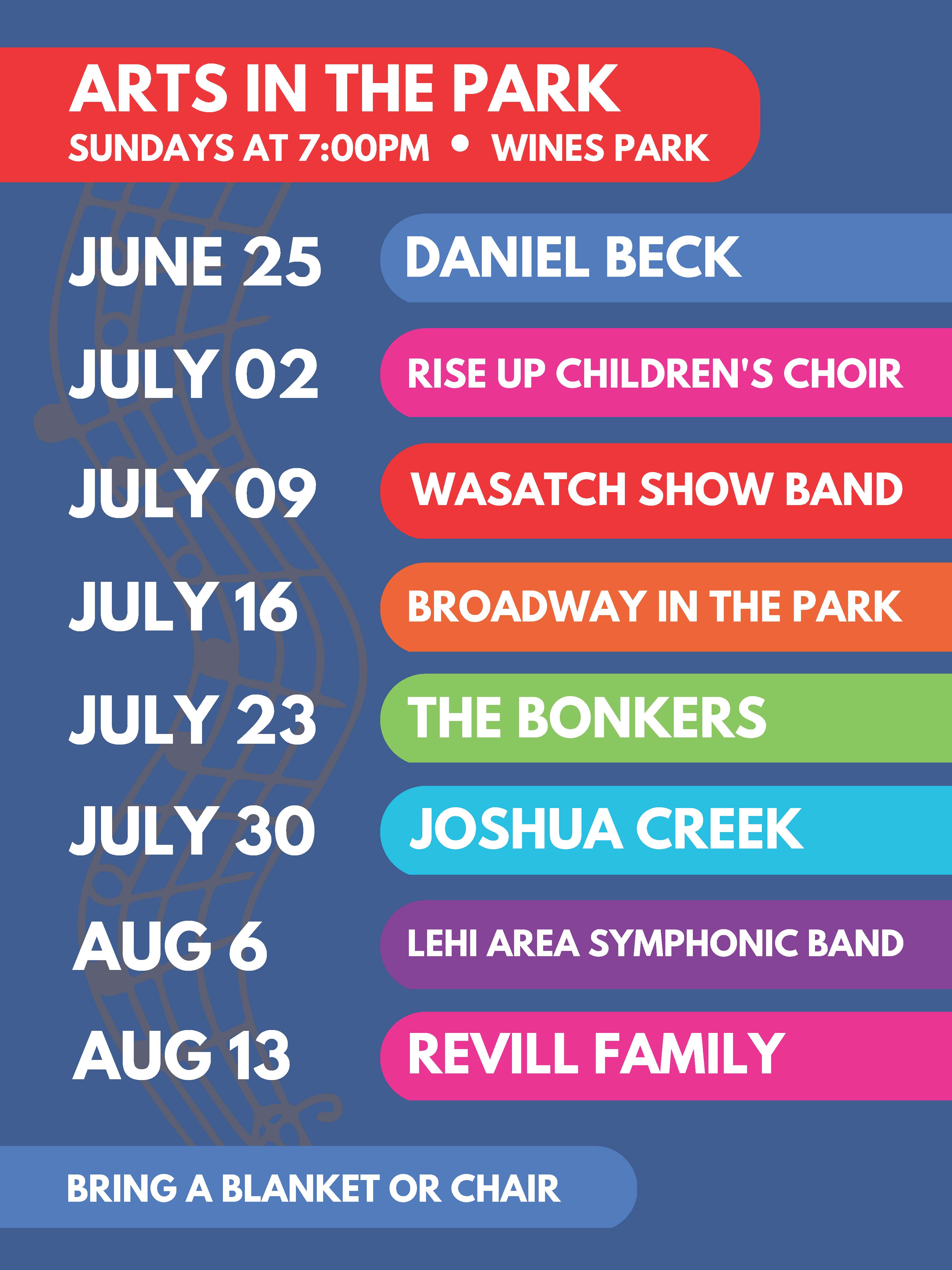 Lehi Arts in the Park schedule Lehi Free Press , Years in the making, the. Sunday, june 25, will be the opening night for arts in the park concert series.